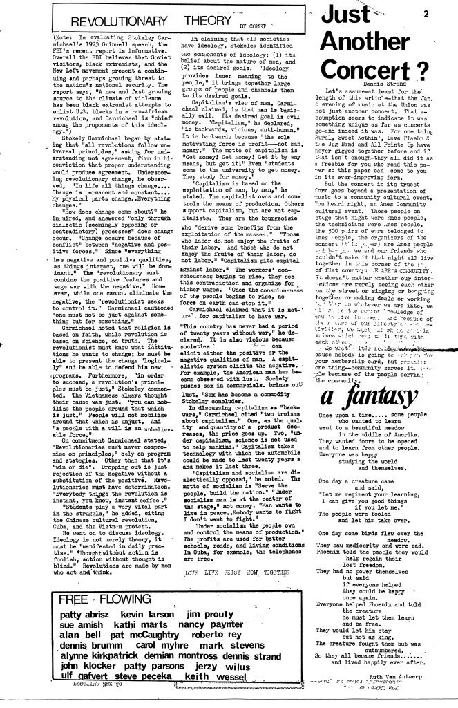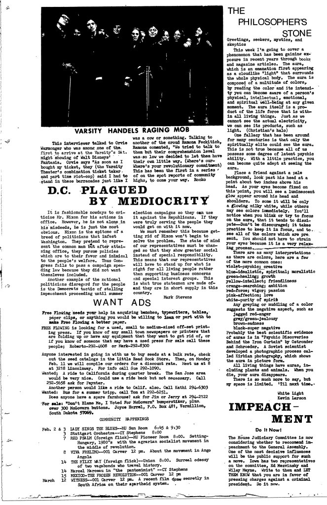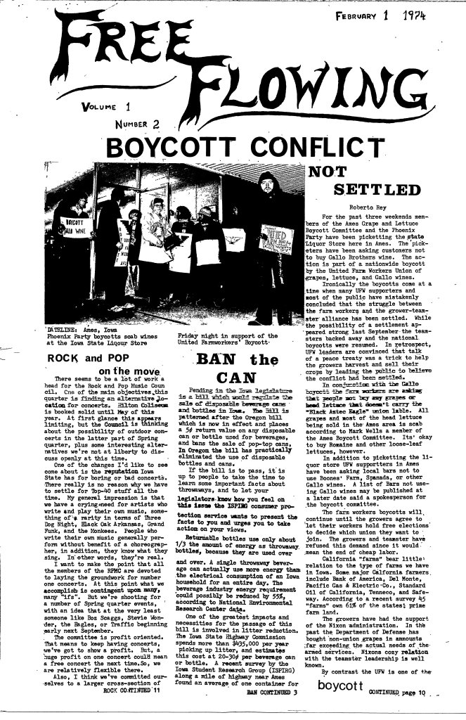 Volume 1 No. 2 February 1974 Beginning with this issue, Free Flowing began publishing on newsprint. Share this: Share on X (Opens in new window) X Share on Facebook (Opens in new window) Facebook Like Loading...